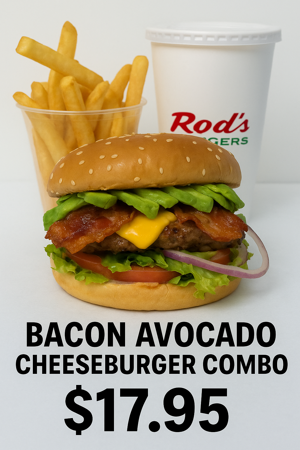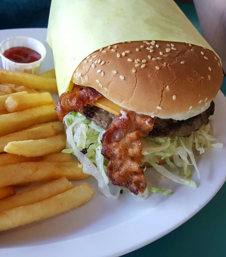 A char‑grilled classic stacked with a juicy beef patty, melted cheese, crisp lettuce, tomato, pickles, and a toasted bun